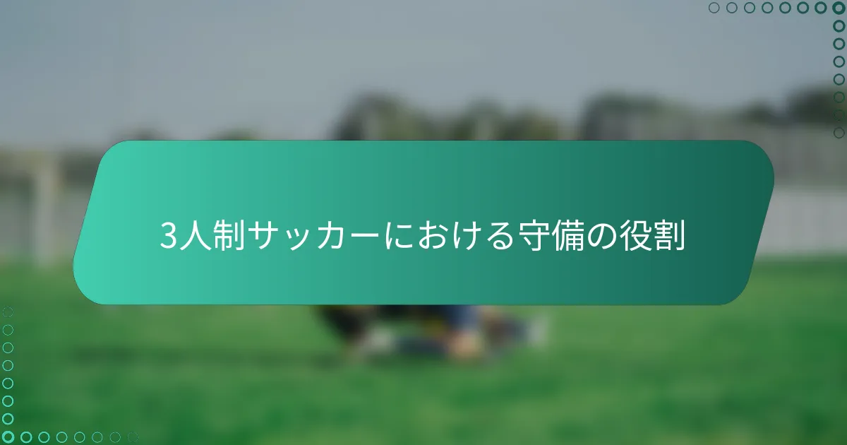 3人制サッカーでは、守備の役割がチームの構造を維持し、ゴールを防ぐために重要です。各選手には、ディフェンダー、ゴールキーパー、ミッドフィールダーを含む、全体的な守備の効果に貢献する特定の責任があります。