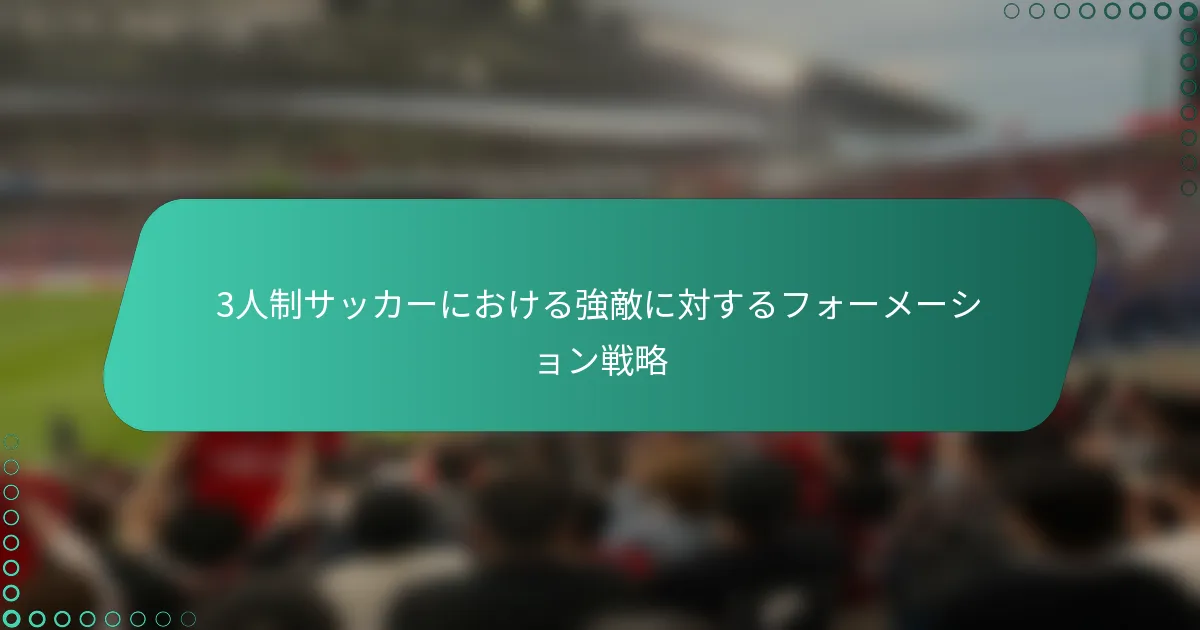 強力な相手との3人制プレーでは、効果的なフォーメーションがチームの強みを活かし、弱点を最小限に抑えるために不可欠です。1-2や2-1のようなセットアップを利用することで明確な利点を得ることができますが、明確な選手の役割を定義することが、バランスを維持し、得点機会を最大化するために重要です。戦術的なポジショニングと迅速なトランジションを採用することで、チームは相手の脆弱性を突き、試合の動的な性質に適応することができます。