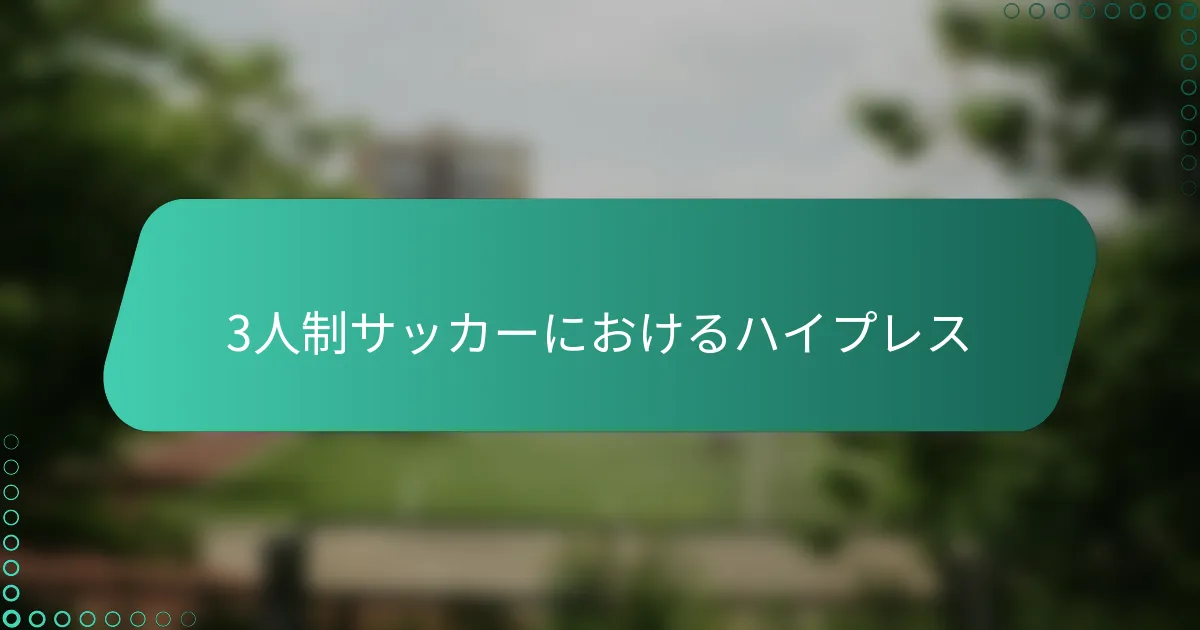 3人制サッカーにおけるハイプレスは、相手チームに強いプレッシャーをかけて素早くボールを奪い返すことを含みます。この戦術は、効果的なフォーメーション、明確な選手の役割、強いコミュニケーションに依存して、相手のプレーを妨害し、得点機会を創出します。