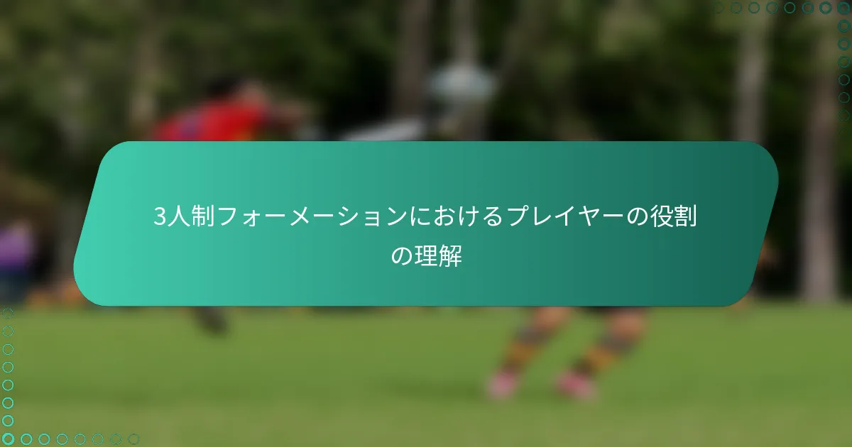 サッカーの3人制フォーメーションでは、チームは通常ゴールキーパーと2人のフィールドプレーヤーを含む3人の選手で構成され、迅速なプレーと戦術的な適応力を促進します。各選手はストライカー、中盤、ディフェンダーという異なる役割を担い、それぞれがチームの戦略に貢献し、攻撃と防御の両方の努力を強化します。選手は自分の強みとポジショニングを認識することで、パフォーマンスを最適化し、全体的なチームダイナミクスを改善できます。
