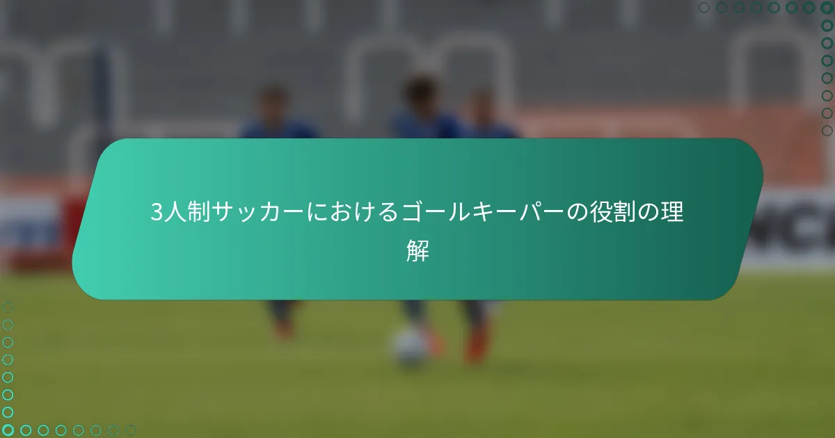 3人制の試合におけるゴールキーパーは、効果的な戦略を通じてチームをサポートする重要な役割を果たします。これらの戦略には、強力なコミュニケーション、迅速な意思決定、そして小さなプレーエリアのユニークなダイナミクスに適応することが含まれます。