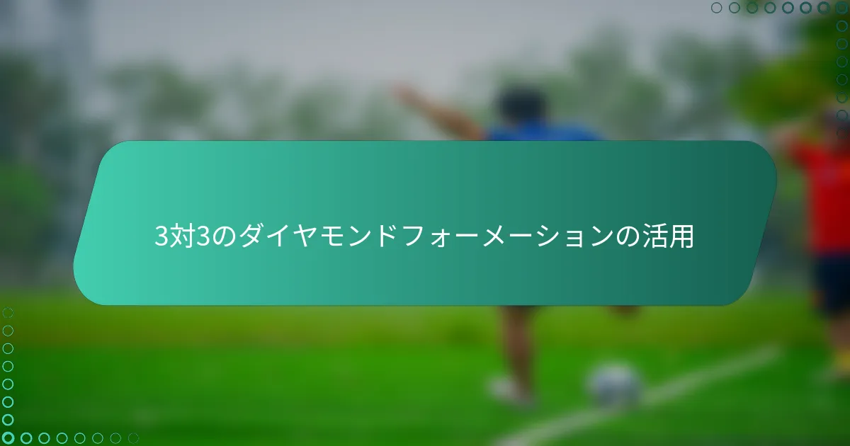サッカーの3対3におけるダイヤモンドフォーメーションは、攻撃と防御の戦略を最適化するために選手をダイヤモンドの形に配置する戦術的なセットアップです。このフォーメーションは通常、後方に1人、ミッドフィールドに2人、前方に1人を含み、フィールド全体で流動的な動きとサポートを可能にします。
