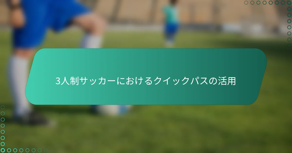 クイックパスは、ボールの動きを向上させ、得点機会を創出するために3人制サッカーで不可欠です。クイックパスを他の戦略と統合することで、チームはスペースの利用を最大化し、速いペースのゲームを維持できます。