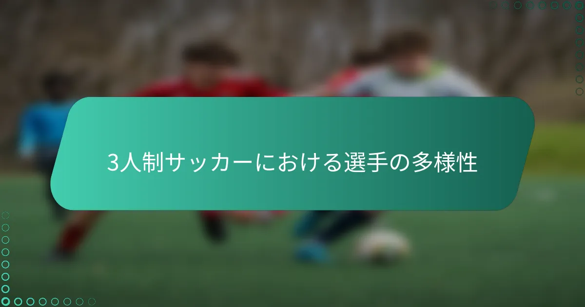 3人制サッカーにおける選手の多才さは、主に適応力、多機能スキル、効果的なコミュニケーション、特定の身体的特性によって推進されます。これらのスキルにより、選手はフィールド上でさまざまな役割を果たし、チームダイナミクスと全体的なパフォーマンスを向上させます。